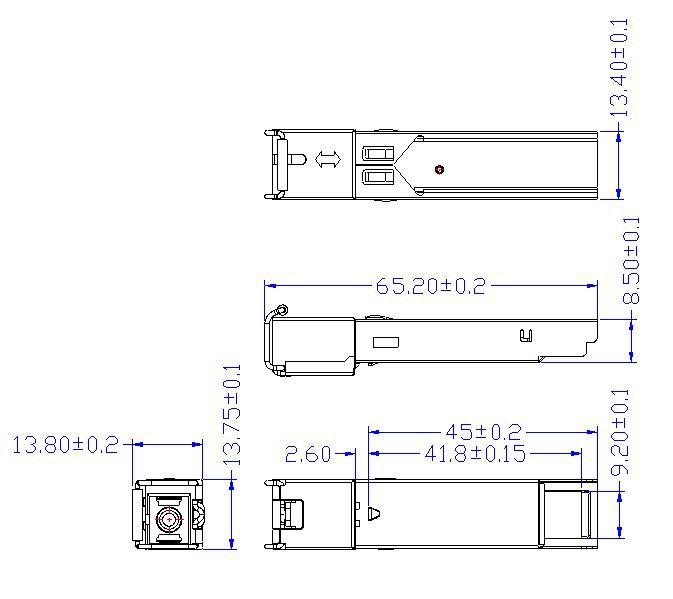 The SFP transceivers are high performance, cost effective modules supporting data-rate of 155Mbps and 40km transmission distance on 9/125μm SMF.