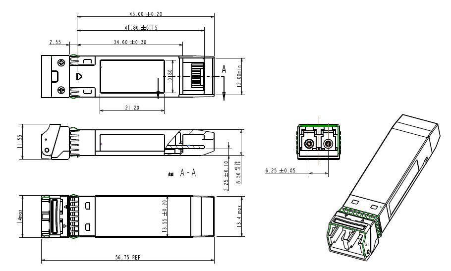 FTCS-1324G-10D24.33Gbps, 1310nm; SFP28, 10km, DDM   0ºC ~ +70ºC