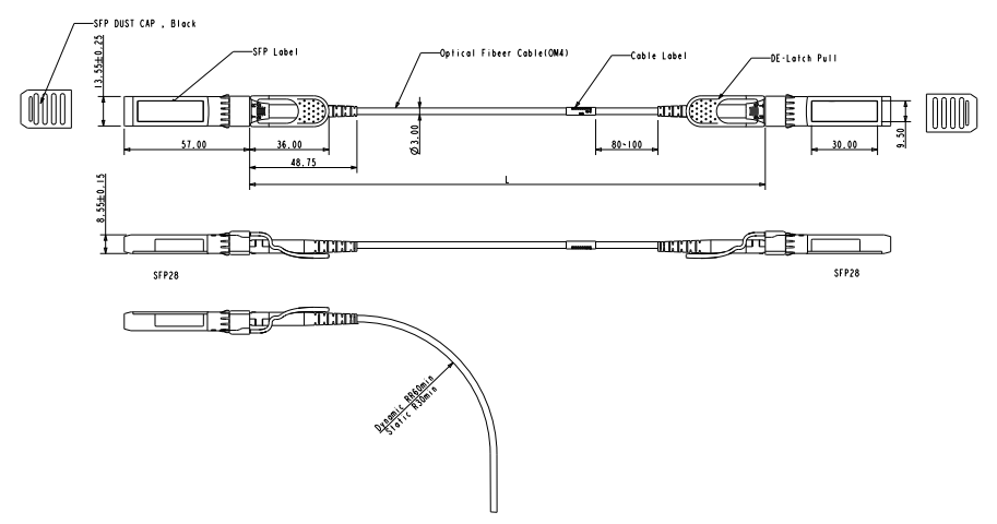 | FTCS-25G-CS-OxxxI | 25Gbps, 850nm; SFP28 Active Optical Cable;-40ºC ~ +85ºC |