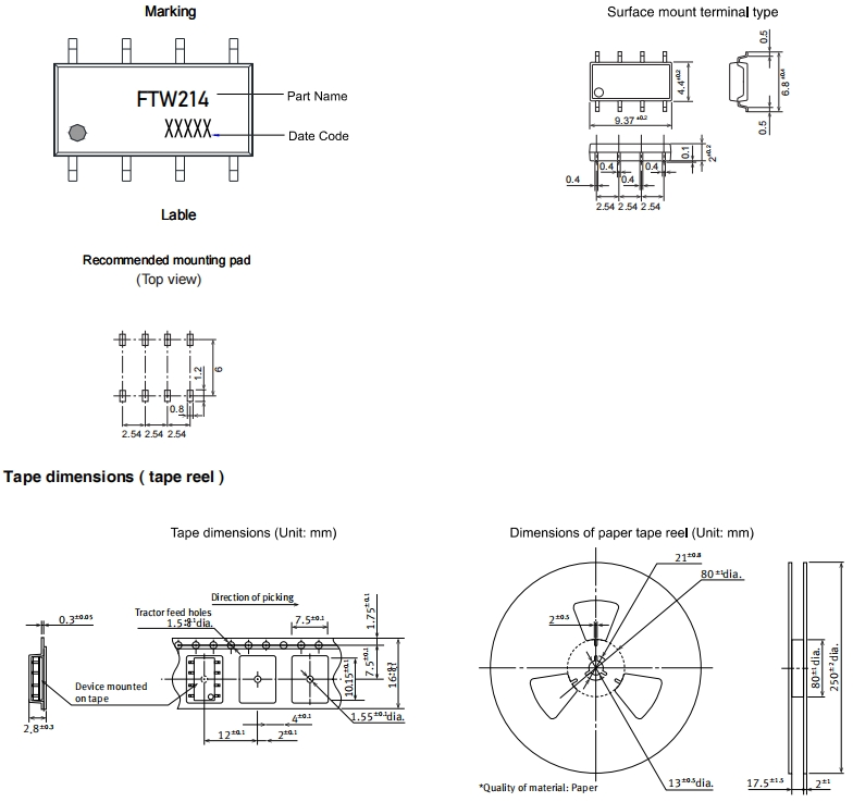 | AC / DC | 400V | 0.1A | SOP-8 | FTW214S | 2000pcs /reel |