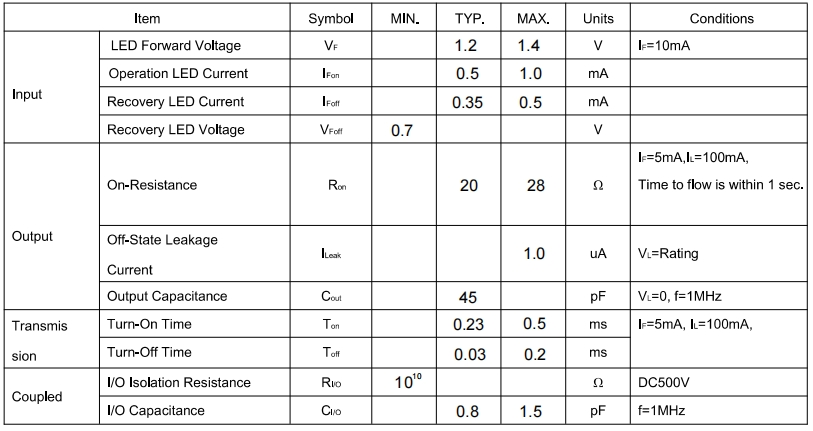 Electrical Characteristics (Ta = 25°C)