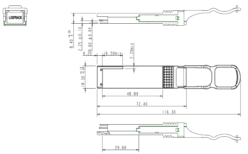 | FTQ2-HG-LB | QSFP28, 100GBASE Active Electrical Loopback,0ºC ~ +70ºC |