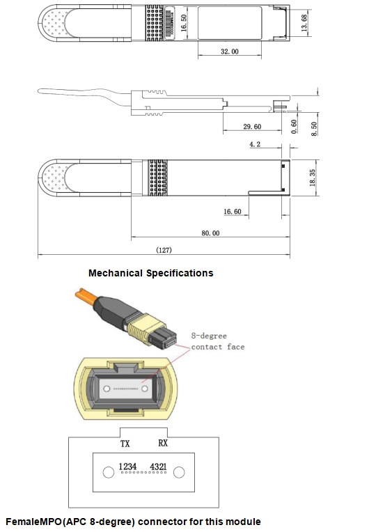3. Sensitivity is specified at 5×10^-5 BER at 25.78125Gb/s.