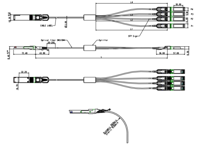 | FTQ2-HG-4CS-Oxxx | 100G QSFP28 to 4x 25G SFP28 Active Optical Cable,0ºC ~ +70ºC |