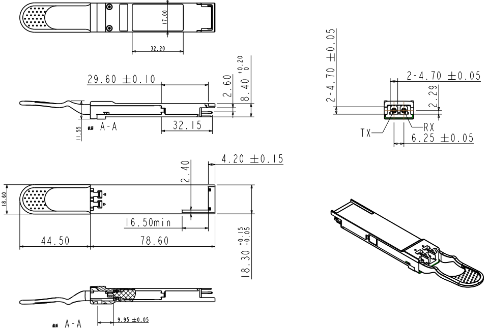 ● Qualified under temperature 85°C and humidity 85% @500 hours (the variation of TX≤2.5 dBm, RX≤1.5 dBm)