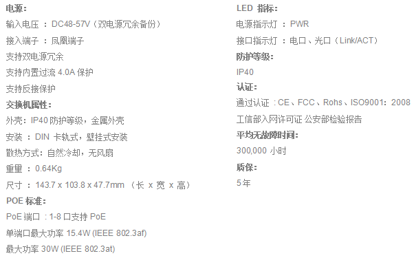 FT-YRD18FP-FC21个百兆光+8个百兆电、FC口、多模双纤、2公里、带POE功能、导轨式、DC48-57V供电-宽温(-40℃-80℃)-CE-RoHS-FCC-公安部检验报告-工信部入网许可证