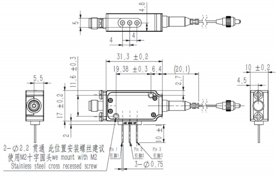 (2)测试时使用北亿纤通FT-79系列 S-mini 同轴模拟光收模块*,如下图,且光纤差损约为 0dB.