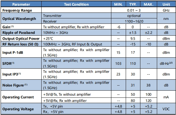 Note: (1) Test with 1-meter SMF-28 fiber.