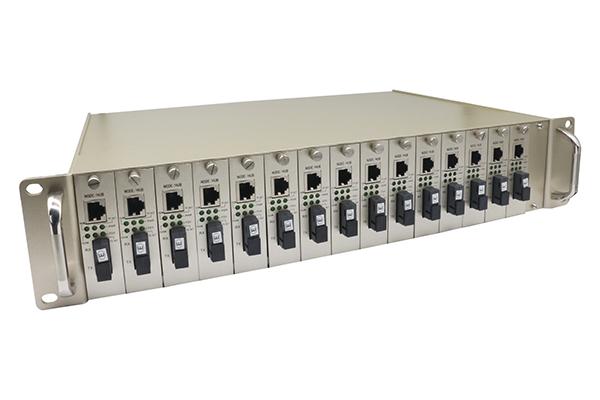 FT-YRD2U-16-CK光纤收发器机架是一种高集成度16槽位的光纤收发器中心设备,可将16块卡式的100M或1000M自适应的多模及单模光纤收发器集中装在一个机架中,统一供电。这样不但减少了连接线,简化了结构,而且便于管理和维护。