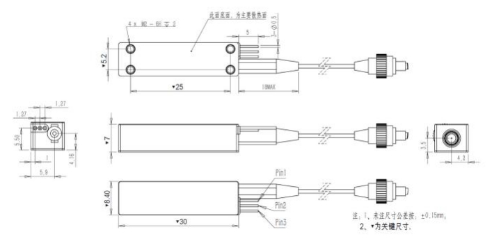 说明:模块请用 M2 的螺钉安装,具体的螺钉长度请根据使用条件决定。