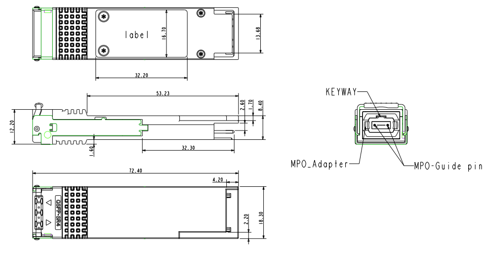 | FTCQ-5X6-SR4 | 56Gb/s QSFP+ SR4, 100m on OM3 Multimode Fiber (MMF)and 150m on OM4 MMF,0ºC ~ +70ºC |