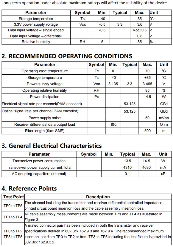 ● Up to 500m over SMF with KP4 FEC supported at the Host side