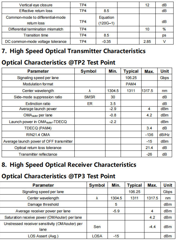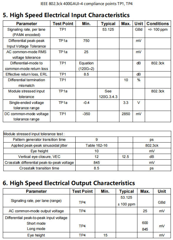 ● 8×106.25Gbps (PAM4) electrical interface