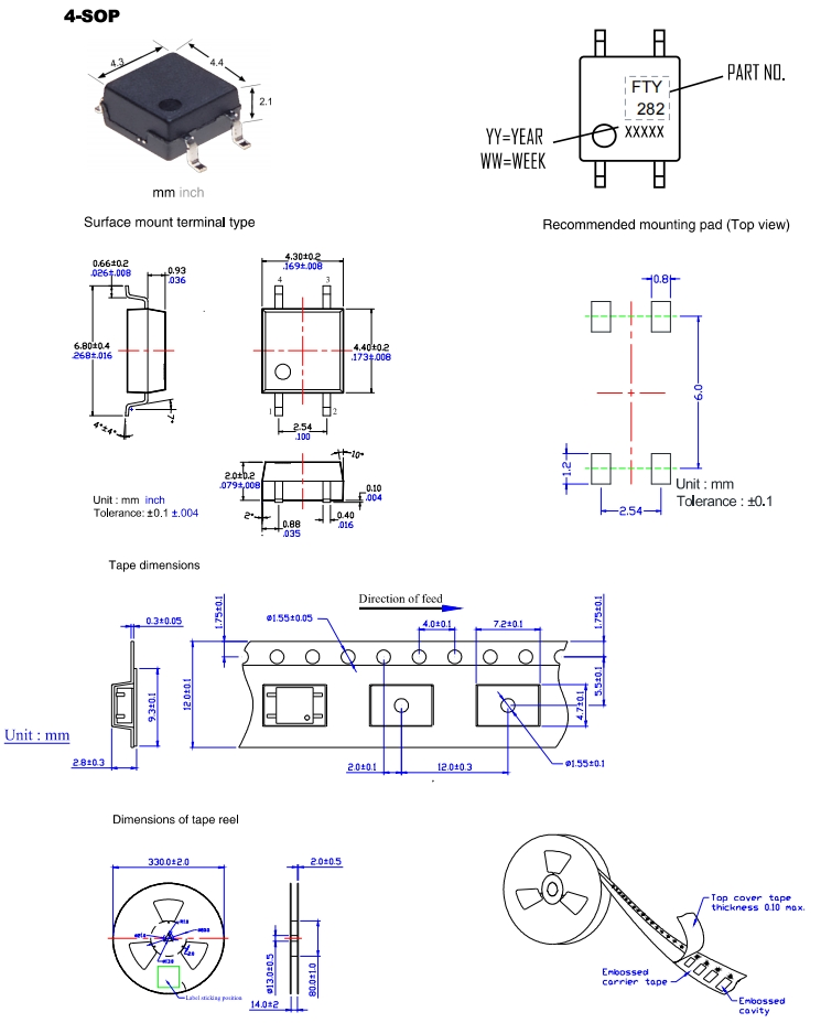 | AC/DC | 60 V | 0.5A | FTY282S | 1-reel: 1 , 000 Pcs. |