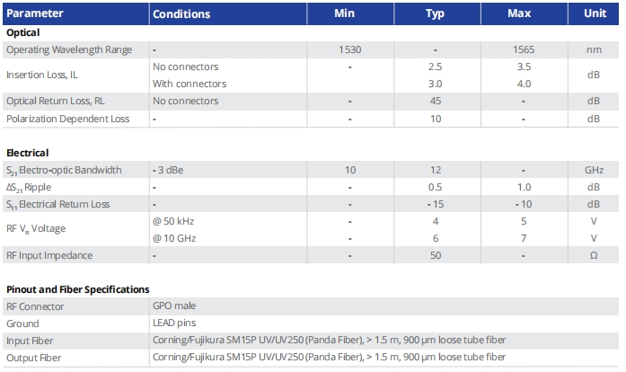 Optical and Electrical Specifications