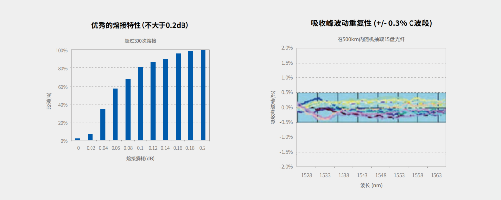 | 250m光纤长度的吸收峰值波动(%) | ≤2.5 | ≤2.5 | ≤3.0 | ≤3.0 | ≤3.0 |