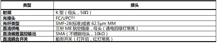 说明(1):其它光接头或者光纤形式也可以提供定制。