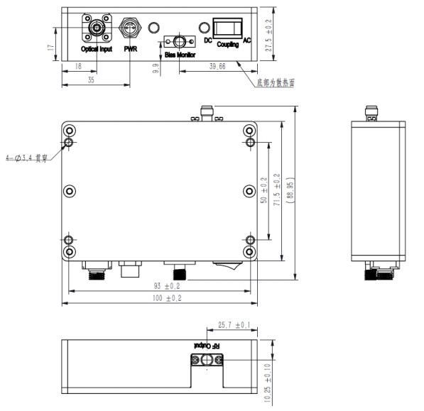 (1)为了保证高速光电探测器的最佳性能和安全使用,用户使用时须做好高速光电探测器的散热工作。