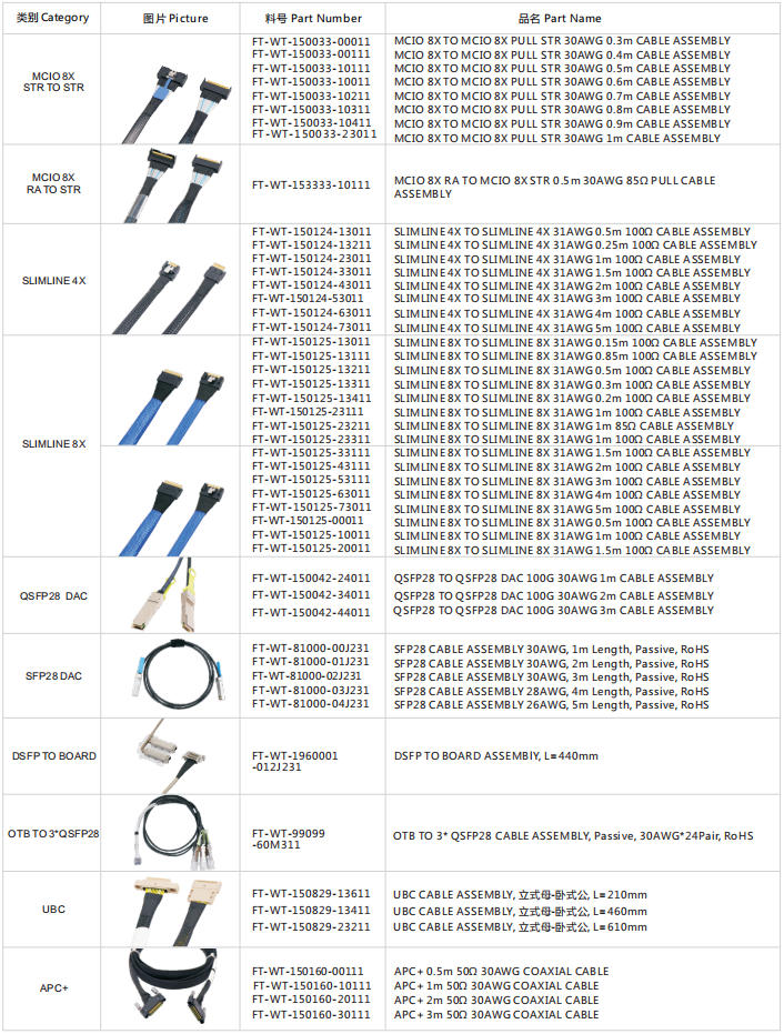● There are MICO/SLIMLINE/DAC/Riser Cable and other customized solutions