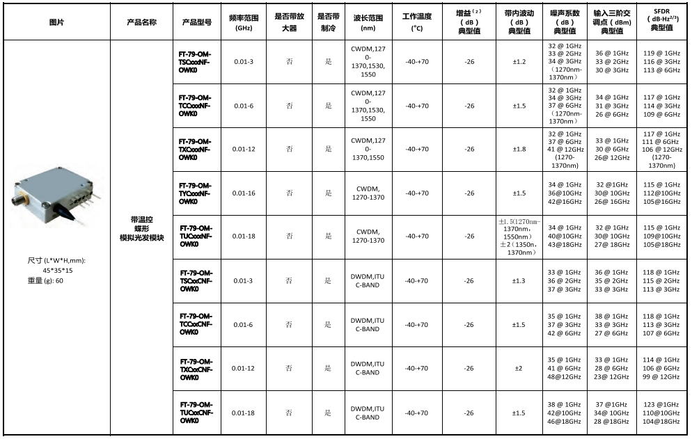 北亿纤通的光载射频产品具有DC-40GHz的超宽带频率范围,以及1米至60公里以上的高性能光纤链路。支持广泛的高动态范围应