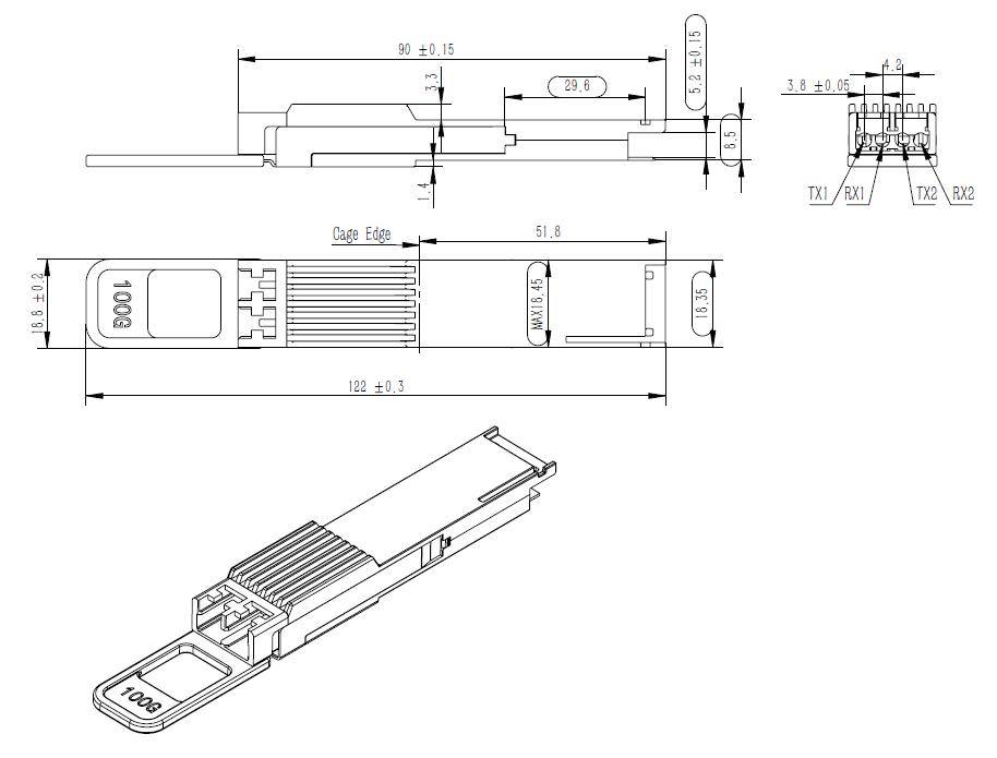 - Receiver: 2*27.5Gbaud/s Pin-PD ROSA