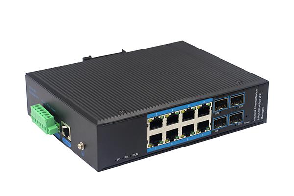 FT-YRD48BGSP-SFP4个千兆光+8个千兆自适应电口、SFP接口、带POE功能、DC48-57V供电-宽温(-40℃-80℃)
