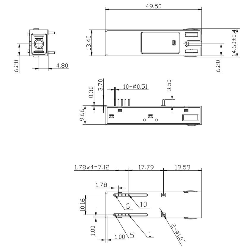 SFF 2X5光模块,BIDI,Tx1310/Rx1550,155M,40km