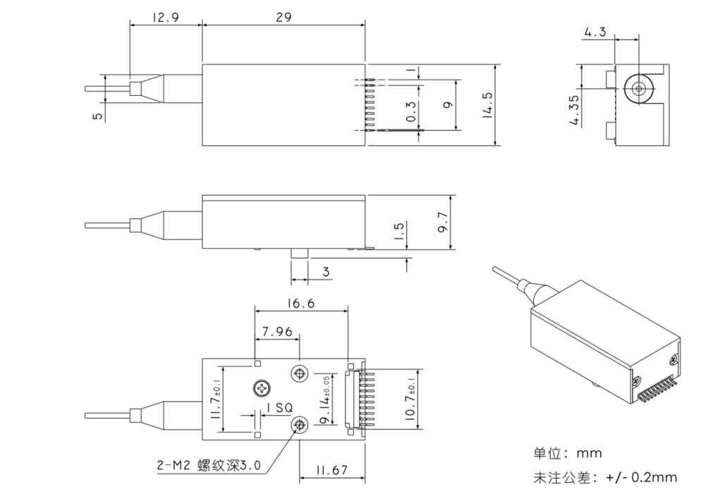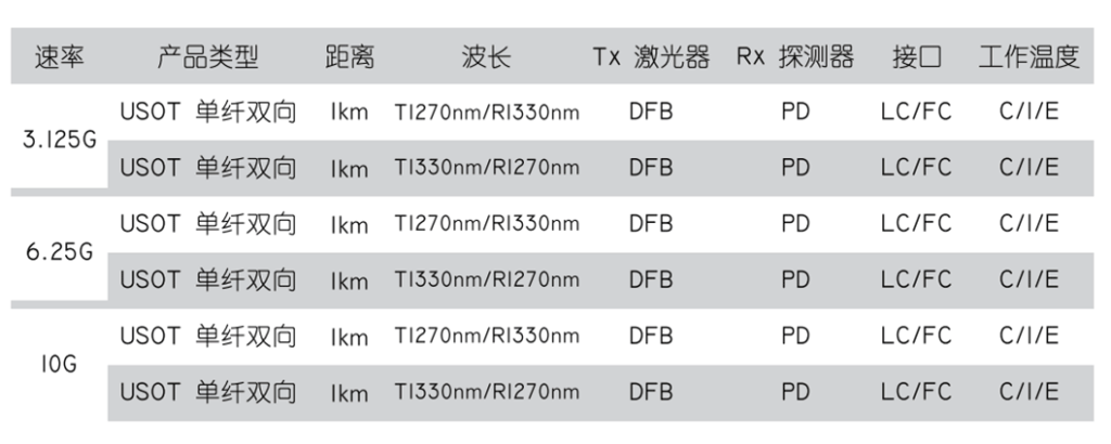 ● 单纤双向,尾纤外径∅0.9mm,长度和接口可定制