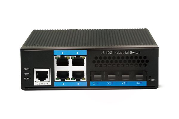 FT-YRD44GSPT4-M-SFP交换机是我司推出的一款万兆三层工业级PoE交换机,配备4个SFP+光口和4个10/100/1000M Base-T自适应电口支持4路PoE,具备先进的硬件处理能力和最丰富的业务特性。支持IPv4/IPv6 硬件双栈及线速转发,使客户能够从容应对即将带来的IPv6 时代其提供高容量的交换能力。该系列交换机采用低功耗、无风扇设计,确保无噪声干扰,同时支持-40~80℃工作温度和良好的EMC电磁兼容性能,保证在恶劣的工业环境中保持稳定的工作,为工厂自动化,智能交通,视频监控等工业应用领域组建快速稳定的网络终端接入网络提供安全可靠的解决方案。